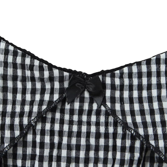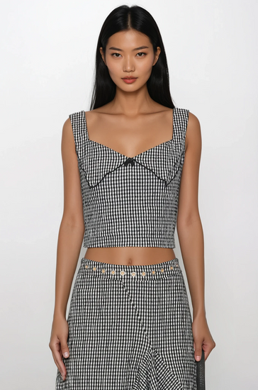 Indulge in the rebellious style of our Rebel Top. With a sleeveless design and v neck, this short top corset adds a touch of edginess to any outfit. The small bow detail at the center chest adds a hint of femininity to this bold plaid top.