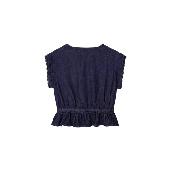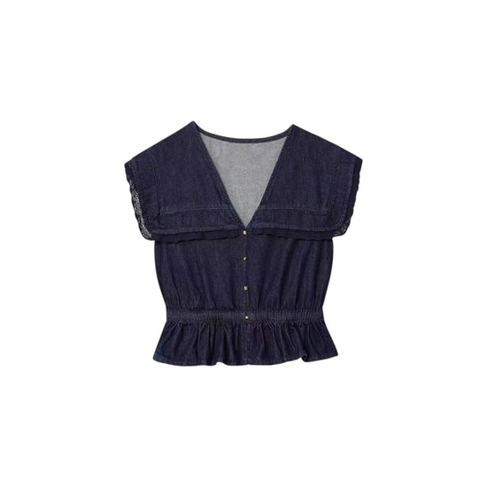 Elevate your style with our Wynira Top. This chic top features a flattering v-neckline and feminine lace trim. The short sleeves add a touch of sophistication while the denim fabric gives it a trendy edge. Perfect for any occasion, this top is a must-have for any fashion-forward wardrobe.