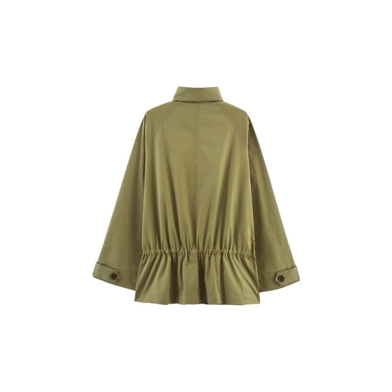 Elevate your style with the Faenya Jacket in chic green. With a long jacket coat design and high neck, this coat will keep you warm and fashion-forward. The cinched waist option allows for a flattering silhouette. Effortlessly achieve a chic look with the Faenya Jacket.