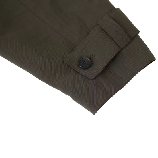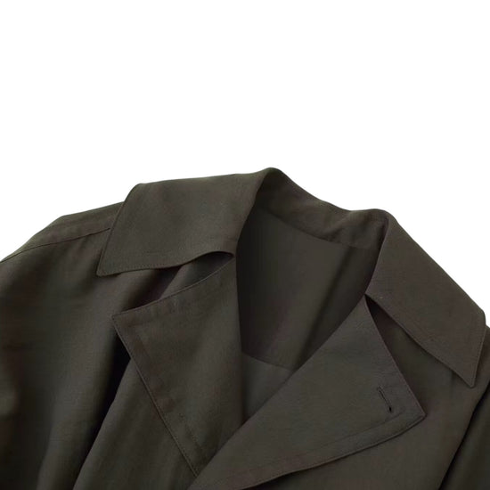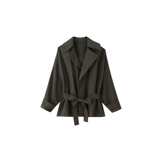 Elevate your fall style with the chic Olivette Jacket. In a trendy olive green color, this jacket features a classic collar and a flattering belt for a stylish touch. Perfect for the autumn season, this jacket is a must-have for any fashion-forward wardrobe.