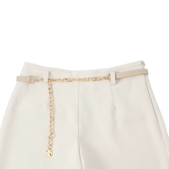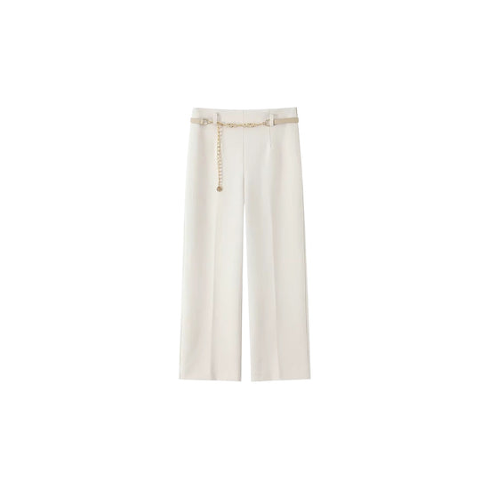 Elevate your wardrobe with our Palenne Pants. With a high waist and ankle length, these suit trousers offer a sleek silhouette that is both flattering and versatile. The chain belt adds a touch of luxury to these pants, making them a must-have for any sophisticated wardrobe.