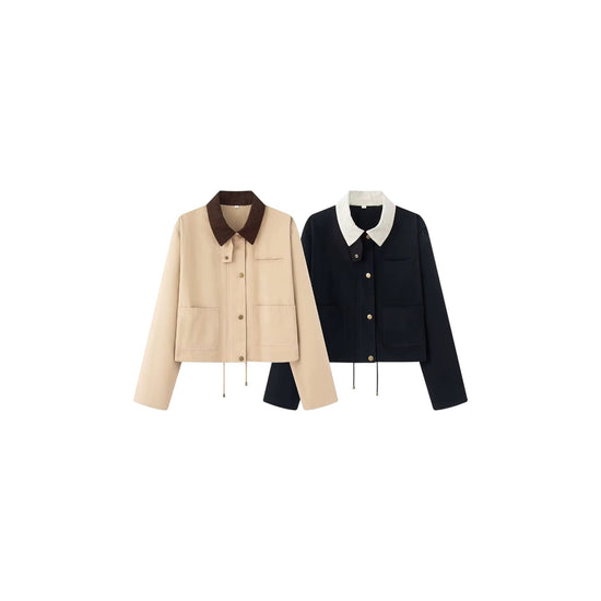 The Farin Jacket boasts a chic and stylish design, perfect for any fashion-forward individual. Its corduroy collar adds a touch of texture, while the short length and long sleeves provide comfort and versatility. Available in both khaki and black, this jacket is a must-have in any wardrobe.