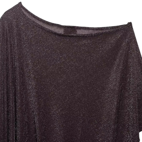 Elevate your wardrobe with this striking asymmetric top in rich dark brown. The one-shoulder silhouette creates an effortlessly sophisticated look, while subtle shimmer detailing catches the light for understated glamour. Perfect for transitioning from day to evening, this piece pairs beautifully with tailored trousers or sleek denim for an instantly polished appearance.