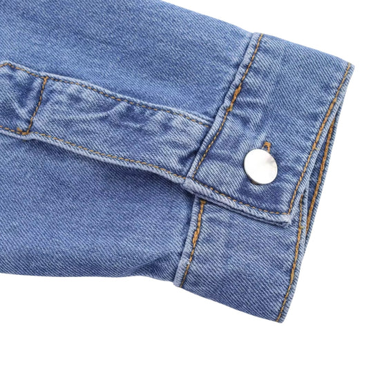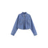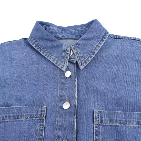 Elevate your wardrobe with the Tavara Top. Made from denim, this chic top features a button-down design and stylish collar. Available in both light blue and dark blue, it's perfect for adding a touch of sophistication to any outfit. With its long sleeves, the Tavara Top is a versatile addition to your closet.