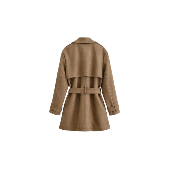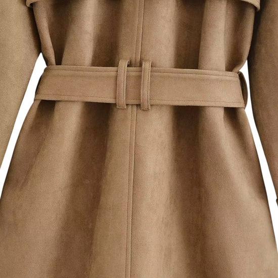 Elevate your style with the Loryn Coat. This chic khaki coat exudes sophistication with its tailored fit and elegant collar. The included belt cinches your waist for a figure-flattering silhouette. Stay warm and stylish with this must-have addition to your wardrobe.