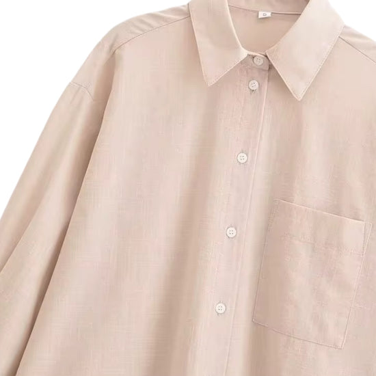The Ondine Top is an effortlessly chic button-down designed for versatile styling. Crafted in a lightweight fabric, it layers beautifully over tees or under sweaters for endless outfit possibilities. A classic collar and functional front chest pocket add polished detail, making this piece a wardrobe essential that transitions seamlessly from casual to refined looks.