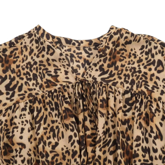 Make a statement with our chic Arasha Dress. Featuring a trendy leopard print and a flattering V-neck, this long-sleeve dress will elevate your look with a touch of wild elegance. Stand out from the crowd in style.