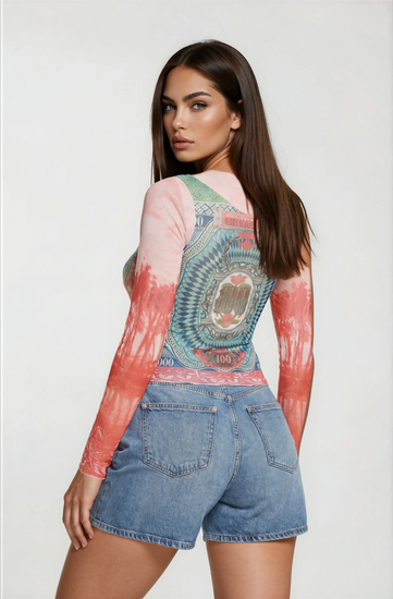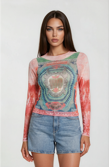 This Keep It 100 Long Sleeve Mesh Top is a great addition to your collection and gives you plenty of reasons to keep it 100. With a long sleeve design, this women's mesh top is lightweight. This style features red and green print design with the phrase "100" on the front for a bold statement.