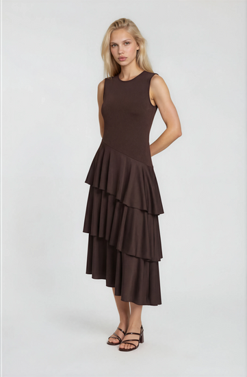 Our Lorisse Dress is a versatile midi piece designed for everyday elegance. Featuring a classic round neckline and sleeveless cut, this A-line silhouette flatters with a natural waistline and pleated detailing. The asymmetrical hem adds modern interest while maintaining a regular fit that works for most body types. Perfect for spring, summer, and autumn, this dress transitions seamlessly from casual days to relaxed social occasions. Layer with a cardigan or jacket for cooler weather, or wear solo when temperatures rise.