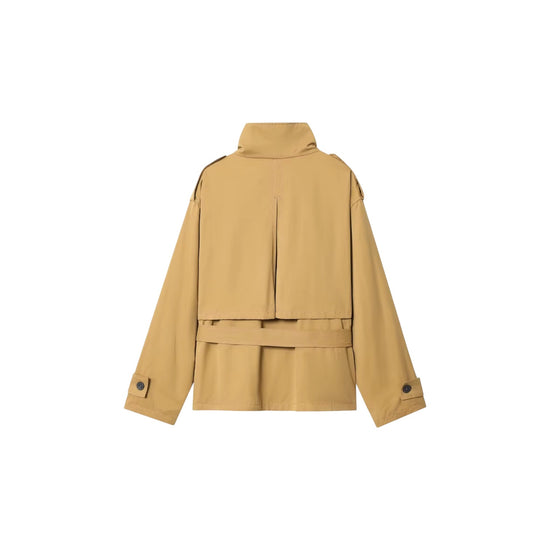 Stay cozy and chic in our oversized Orwyn Jacket. The khaki color adds a touch of sophistication, while the mock neck provides extra warmth. The belt and buttons give a stylish touch, making this jacket perfect for any occasion.