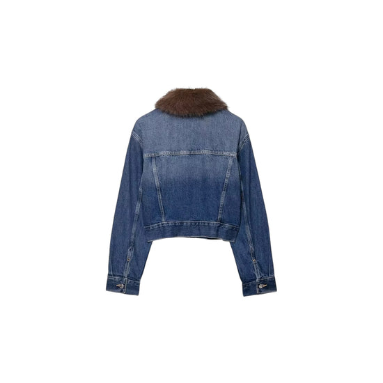 Stay warm and stylish in our chic Haisley Jacket. With long sleeves and a cozy brown faux fur collar, this denim jacket is the perfect addition to your wardrobe. Perfect for any occasion, it will elevate your look effortlessly.