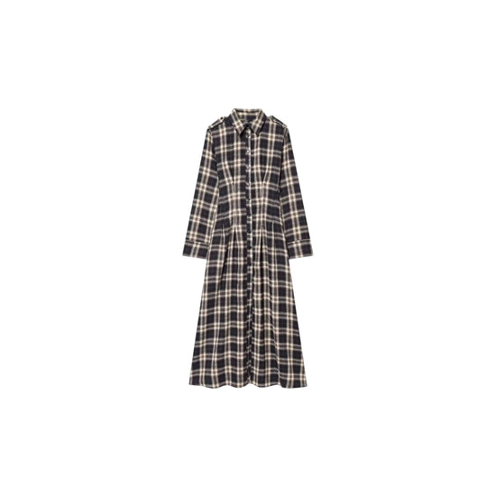 Effortlessly chic and sophisticated, our Quenel Dress features a pleated design that adds texture and movement to your look. The playful plaid print and midi length exude timeless elegance, while the long sleeves and collar make it a versatile choice for any occasion. With a classic button-down front, this dress is an essential addition to your wardrobe.